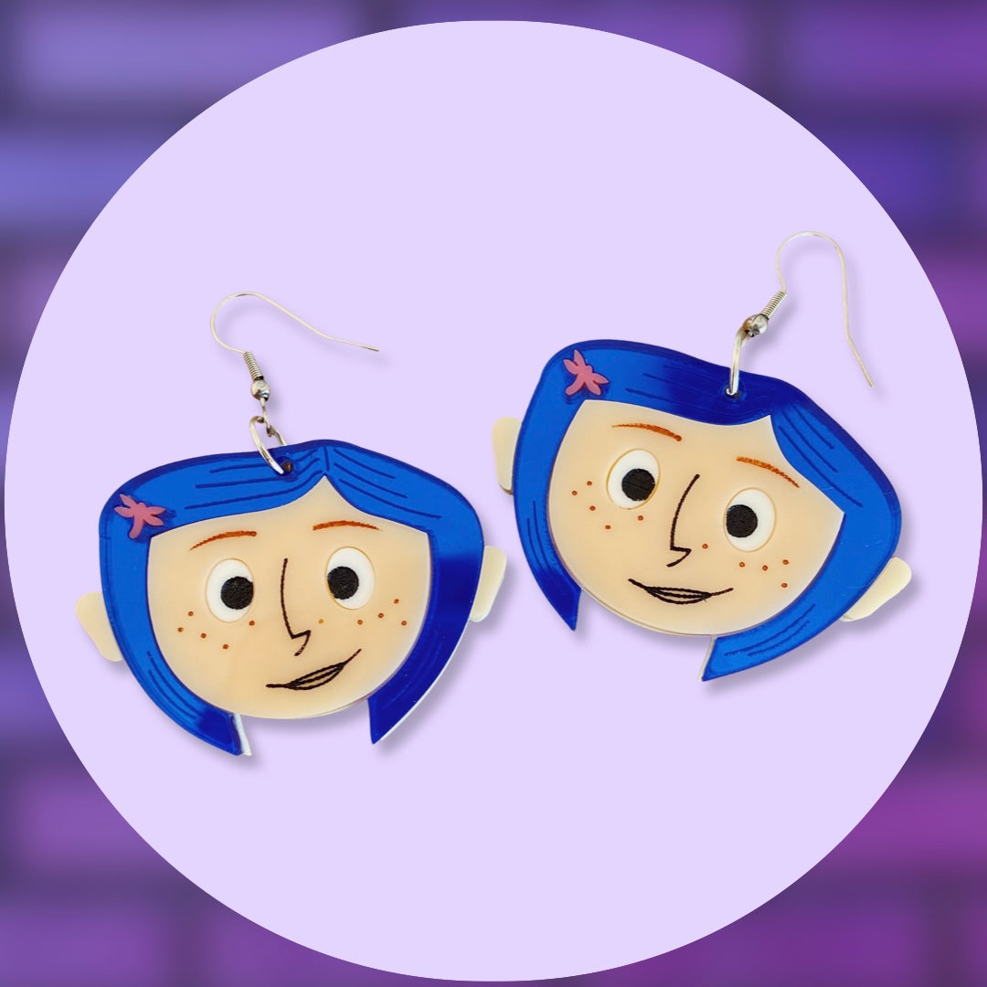 These earrings are made out of mirrored and glossy acrylic that has been engraved and hand painted with details. The hooks are made of stainless steel. These earrings are a medium size, making them easy to wear all day. All my designs are digitally created, laser cut, and then hand assembled.