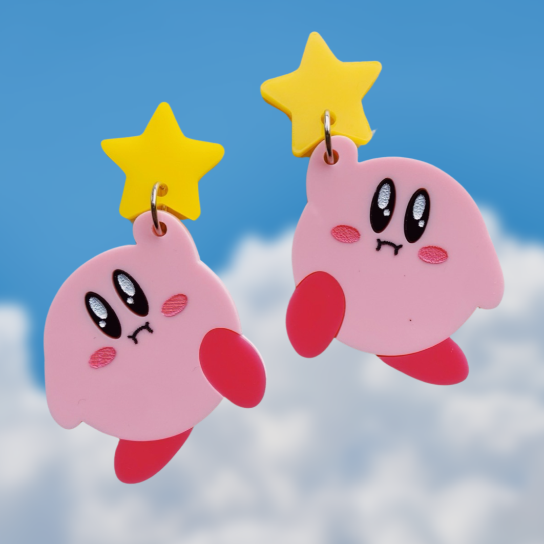 These earrings are made out of pink, black, and yellow glossy acrylics that have been engraved and hand painted with details. The studs are made out of stainless steel. All my earrings are digitally created, laser cut and then hand assembled.